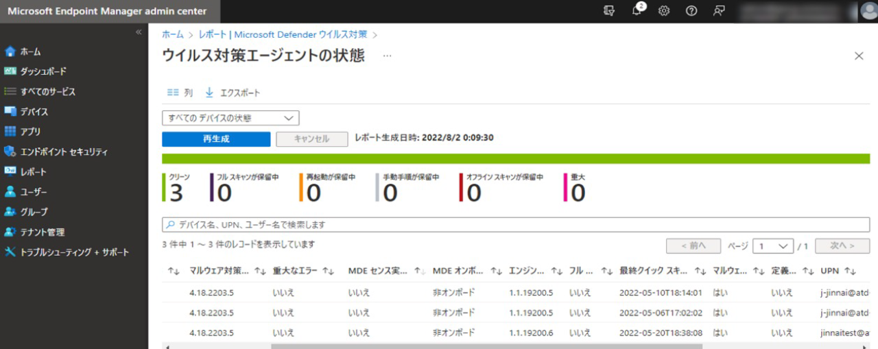 Microsoft Defender for EndpointとMicrosoft Endpoint Managerとの連携により、感染リスク端末のリアルタイムな状態やウイルス対策エンジンのバージョン、スキャンの状態確認が可能