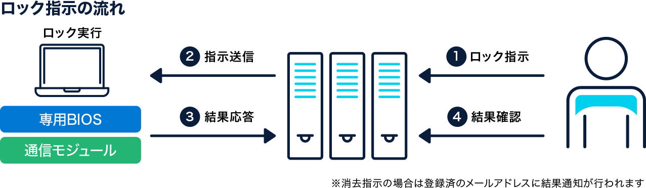万が一利用者がPCを盗難される、または紛失してしまった時も、遠隔操作によるロック/データ消去でモバイルPCからの情報漏えいを防げる