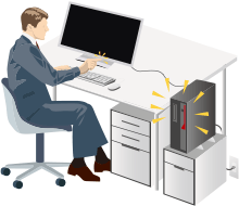 ディスプレイの電源をONにすると、同時にパソコン本体の電源もONになる電源連動機能を搭載。これにより、パソコン本体を床上に置いた時、机上のディスプレイの電源を入れるだけでパソコン本体の電源もONになるのでより楽な体勢で電源を入れることが可能です。また、机上をより広く使え、快適なオフィスワークを実現します。