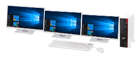 ディスプレイインターフェースを標準で2ポート搭載。D957/P、D956/P、D586/Pは、カスタムメイドでグラフィックスカードを増設すると3ポート搭載となり、同時3画面出力がご利用になれます。マルチディスプレイ環境を気軽に構築できます。複数台のディスプレイに同一のデスクトップを同時に表示する「クローン機能」や複数台のディスプレイで1つのデスクトップを表示する「マルチモニタ機能」、「グルーピング機能」(カスタムメイド時)がご利用になれます。