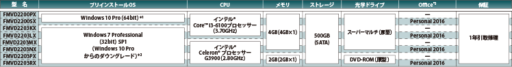 (注2):Windows 10 Pro(64bit)用、Windows 7 Professional(64bit / 32bit)用のリカバリデータディスク(DVD-ROM)、WinDVDディスクを標準添付しております。