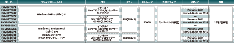 (注2):Windows 10 Pro(64bit)用、Windows 7 Professional(64bit / 32bit)用のリカバリデータディスク(DVD-ROM)、WinDVDディスクを標準添付しております。