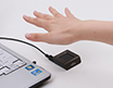 手のひら静脈センサーを使用して静脈認証を行うには、あらかじめ静脈情報を登録しておく必要があります。センサーの発光部から出た近赤外線を手に当て、その散乱光をセンサーの受光部で読み取ることによって、手のひら内部の静脈情報を読み出します。センサーにかざした手の静脈情報と、事前に登録された静脈情報が一致すると認証が完了します。