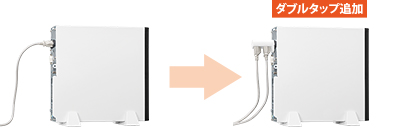 サービスコンセントを1個から2個へ増やすことができます。これによりディスプレイを2台接続することができ、奥行きも電源ケーブルを1本接続している時と変わりません。さらに、サービスコンセントの形状を斜め右に傾けることで接続した電源ケーブルがその他のインタフェースを塞ぐことなくスムーズにケーブル類が接続できるよう設計されています。また、電源連動式サービスコンセントにより、マルチディスプレイ環境でも省エネルギーを実現できます。