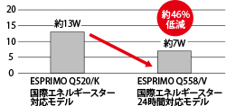 待機時にCPUの消費電力を低減させるなどの電源制御を行い、省スペース筐体のQシリーズにおいては業界最高水準となる約4Wの低消費電力を実現しています。3年前のQシリーズと比較した場合、削減できる消費電力は最大約46%です。(注1)