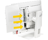 コネクタカバーにワイヤーロック(別売り)を取り付けることでカバーがロックされるので、背面にあるU S B インターフェースからの可搬媒体による情報漏えいを防ぐことができます。