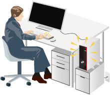 パソコン本体の電源をONにすると、同時にディスプレイの電源もONになる電源連動式サービスコンセントを採用。本体電源OFF時と本体省電力時にディスプレイへの電源供給がストップ。ディスプレイの消し忘れを防ぎます。また、ディスプレイの電源を本体より供給できるため、すっきりとした配線が可能です。