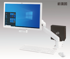 従来の液晶ディスプレイに比べて可動範囲が広く取れるので、ユーザーに合わせた配置や使い方が可能。さらに、ベーススタンドまたは、背面部にESPRIMO Qシリーズを装着することによりPCの設置面積が実質ゼロとなり、机上のスペースをより有効利用できます。