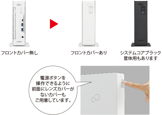 PC本体前面にある電源ボタンやコネクタ類の操作をできなくする新しいカバーです。(電源はキーボードでON可能。)