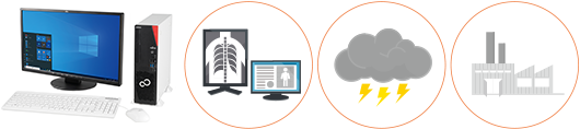 日本国内で開発・生産されたRadiForceは優れた信頼性と品質を備えており、富士通 ESPRIMOシリーズと組み合わせることで、信頼性の高い総合的なシステムを医療現場に提供します。