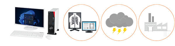 日本国内で開発・生産されたRadiForceは優れた信頼性と品質を備えており、富士通 ESPRIMOシリーズと組み合わせることで、信頼性の高い総合的なシステムを医療現場に提供します。