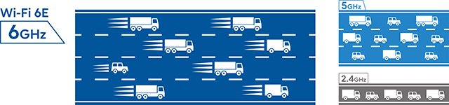 (注)Windows 11選択時のみWi-Fi 6E (6GHz帯)をサポートします。Windows 10選択時は2.4GHz帯と5GHz帯のみ利用可能です。