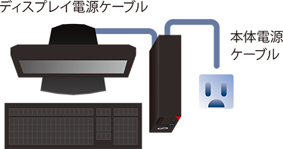 本体電源OFF時と本体省電力時にディスプレイへの電源供給がストップ。