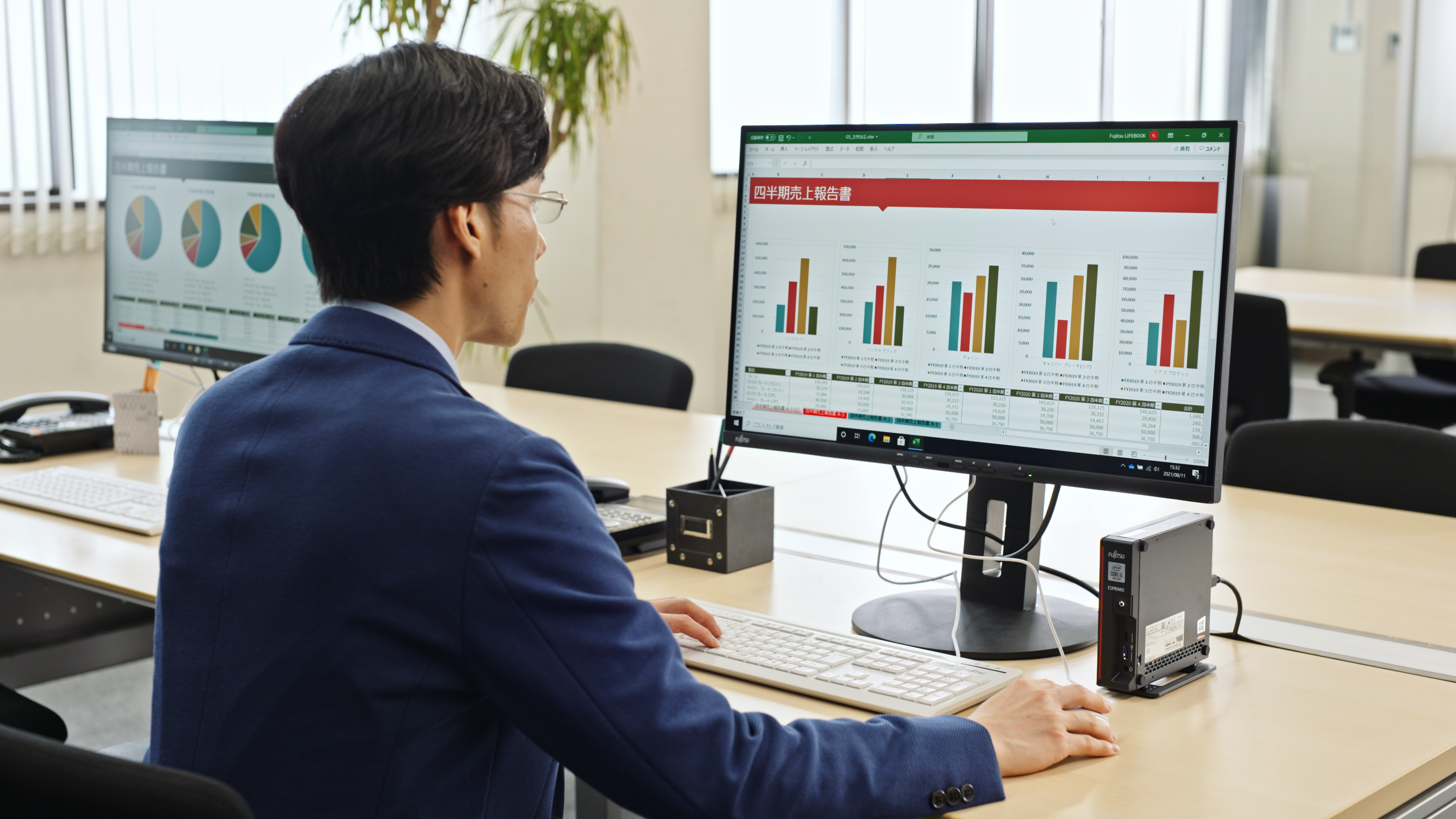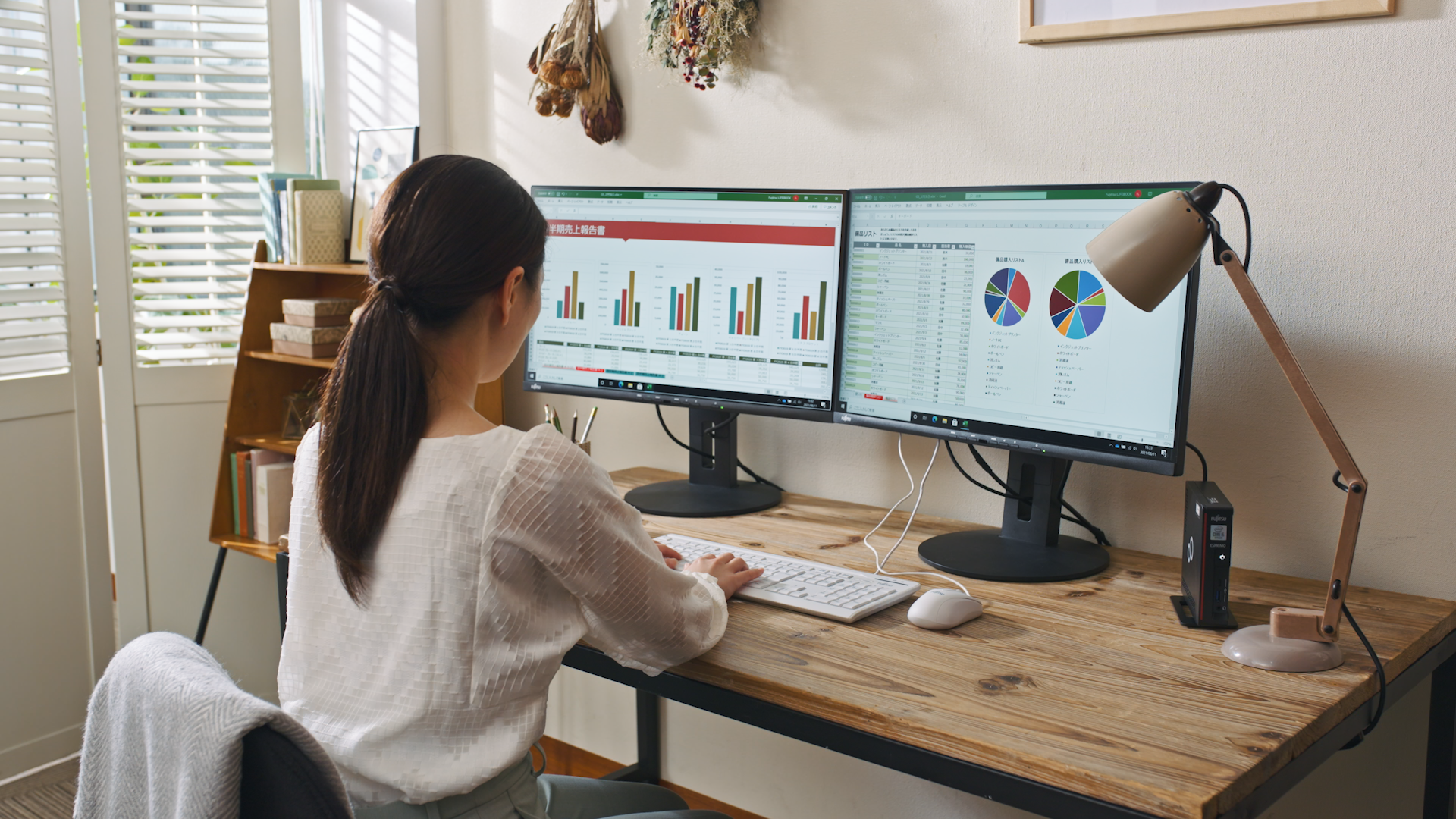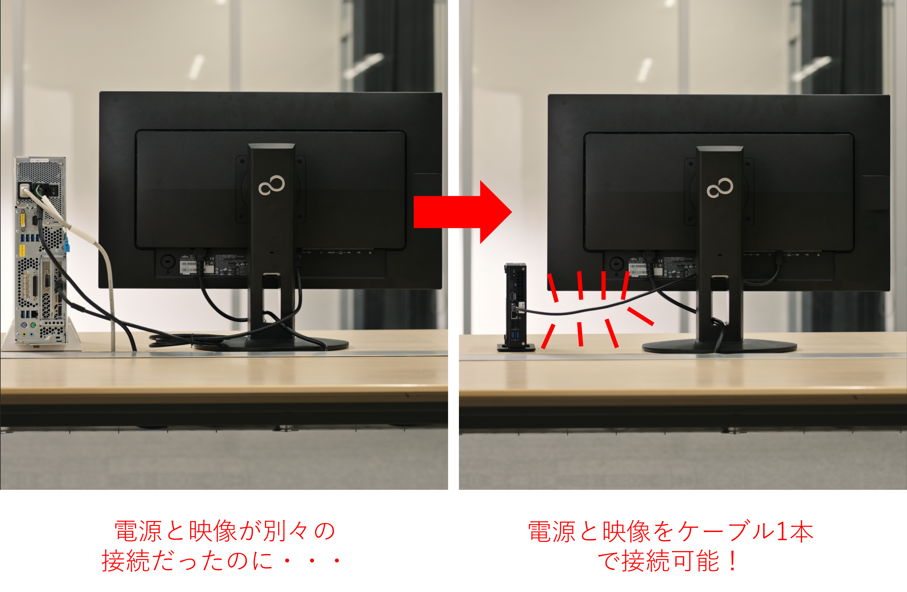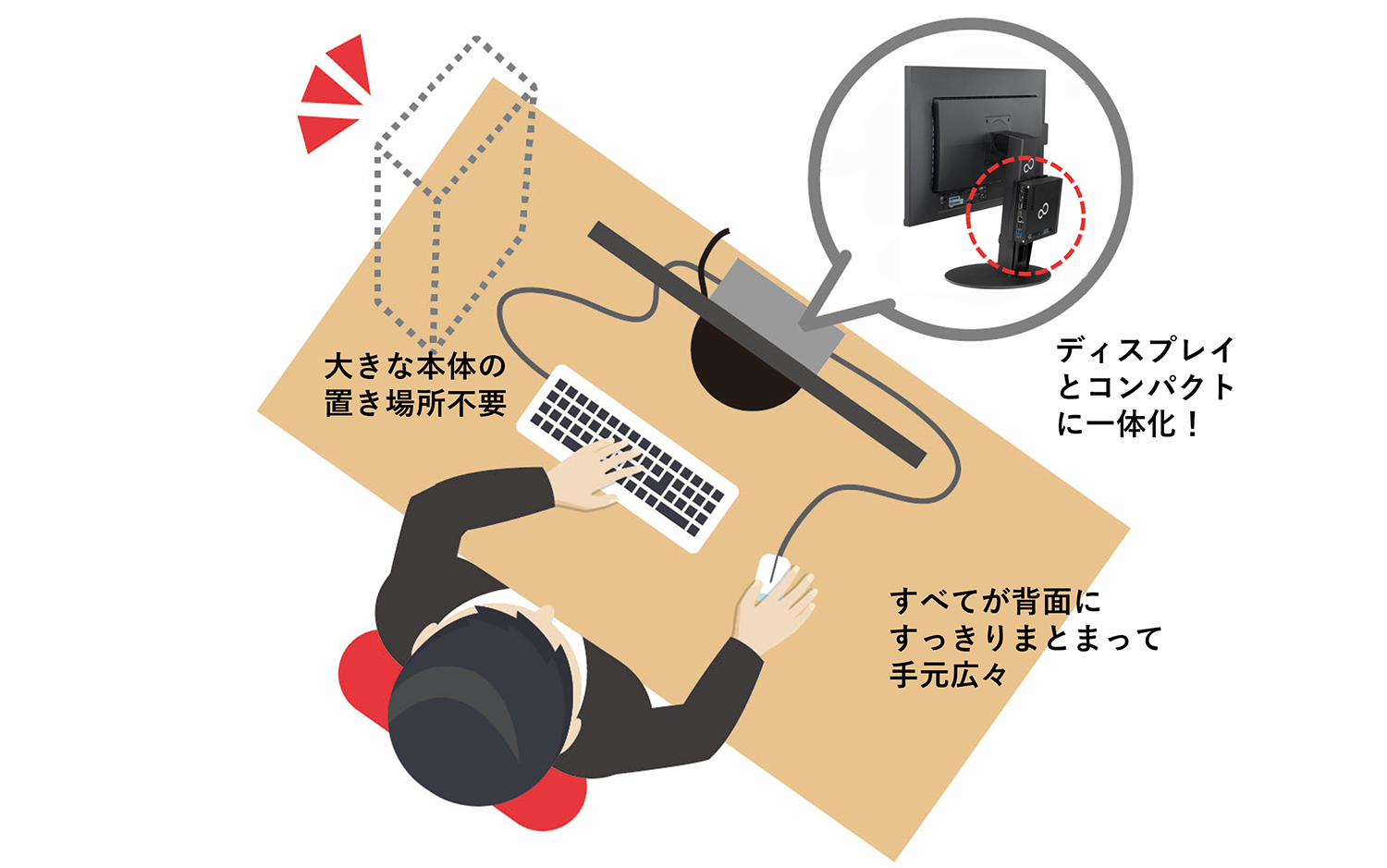 デスクで多くのスペースを占有していたPC本体の設置スペースを大幅に削減し、デスクを広々と使えるので作業も快適です。
