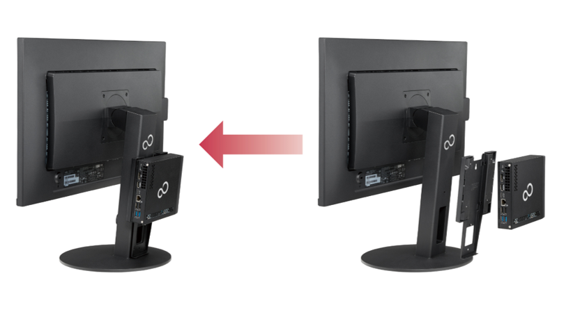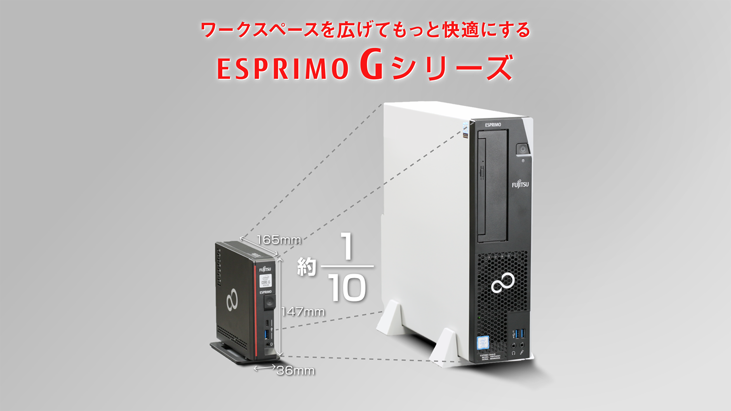 デスクの上を有効活用できる超コンパクト設計。わずか約0.87リットルのシリーズ最小筐体だからレイアウトフリー。