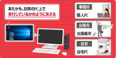 | Mobility | : | 外出先からいつものパソコン環境が利用可能 |