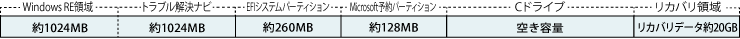 (注)リカバリ領域は、Q555/K64、Q584/Kの場合約15GB、Q335/K、Q555/K32の場合約12GBになります。