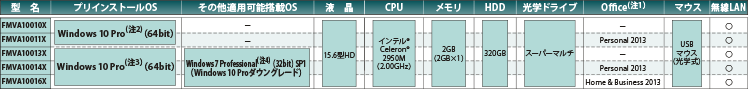 (注3)Windows 7 Professional(32bit) SP1にダウングレードして出荷します。
