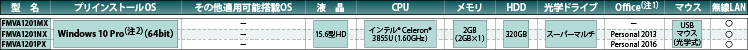 | インテル® Celeron® 3855U(1.60GHz) | CPUと一体 | |||