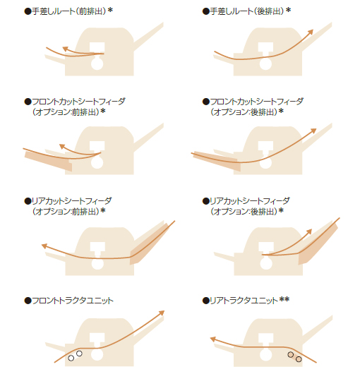 (注)FMPR5130は、オプションのトラクタユニットを増設することで、8通りの用紙搬送ルートに対応。