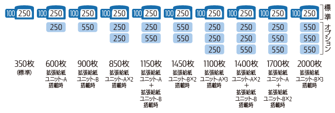 | オプション給紙 | 拡張給紙ユニット-A:250枚カセット給紙