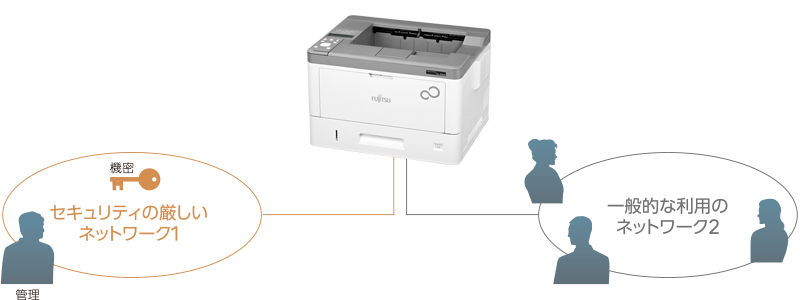 ネットワークを分離したオフィス環境でもプリンタ共有を実現。セキュリティ性をそのままに、コストダウンが可能です。
