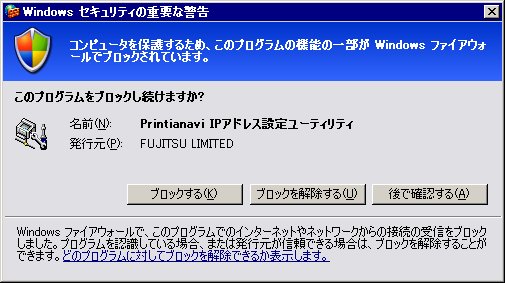 「Printianavi IPアドレス設定ユーティリティ」のV5.1L20以前のバージョンを Microsoft® Windows Server® 2003 Service Pack 1/Service Pack 2 上でWindowsファイアウォール機能を有効にして使用すると、Windowsファイアウォールにより通信がブロックされる場合があります。