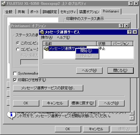 - プリンタプロパティのPrintianaviタブにおいて、メッセージ連携サービスの設定ダイアログ上でサービスを「開始」にしても、20秒~30秒程度応答がなく、サービスが開始状態とならない。