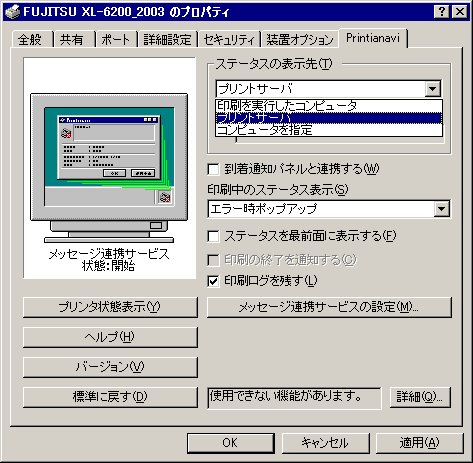 Printianavi のステータスをプリントサーバ側に表示する機能です。クライアント側に表示せず、プリントサーバ側でステータス管理を行う場合に使用します。