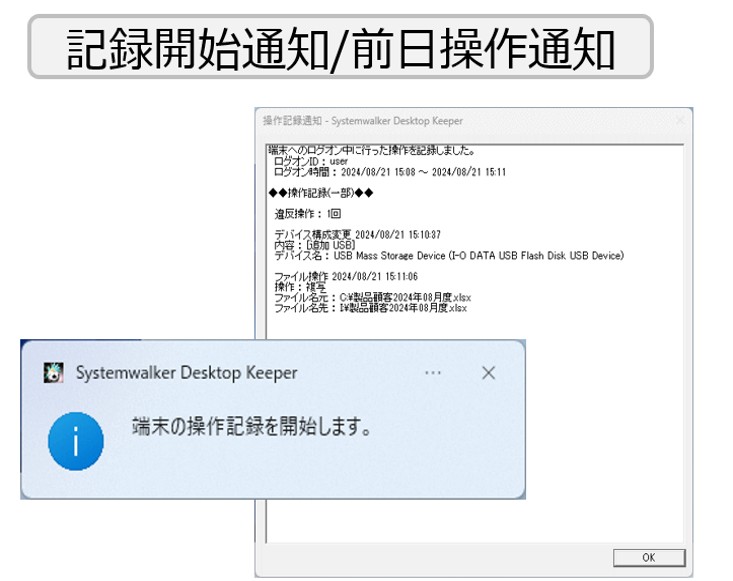持出し操作の記録に対応し、利用者のセキュリティ意識の啓もうを支援します※2。